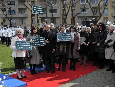 Finalement l’inauguration du jardin des Mères et Grands-Mères de la Place de Mai à Paris 15e, rive gauche, à l’angle de la rue Balard et quai de Javel près du pont Mirabeau eut lieu le 7 avril 2008 en présence de nombreuses personnalités :