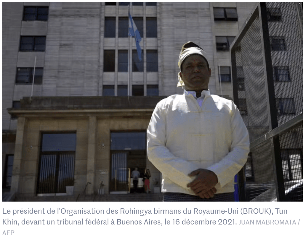 La justice argentine ordonne l’arrestation de dirigeants birmans pour crimes contre l’humanité et génocide contre les Rohingya. Une enquête avait été ouverte par la justice argentine en 2021, en vertu du principe de « compétence universelle » et à la suite d’une plainte émanant de Rohingya pour crimes présumés contre cette minorité. (14/02/25)