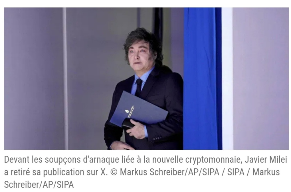 Le président Milei accusé d’avoir promu une gigantesque escroquerie à la cryptomonnaie. Le chef d’État argentin a retiré une publication dans laquelle il promouvait une cryptomonnaie qui s’est révélée être une arnaque. L’opposition réclame une enquête. (Olivier Ubertalli, 15/02/25)